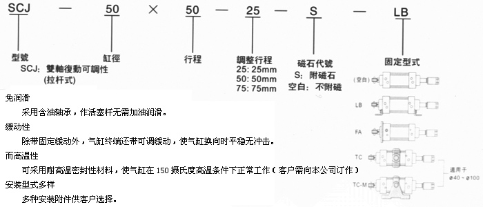 而高温性 可采用耐高温密封性材料,使气缸在150摄氏度高温条件下正常工作(客户需向本公司订作)