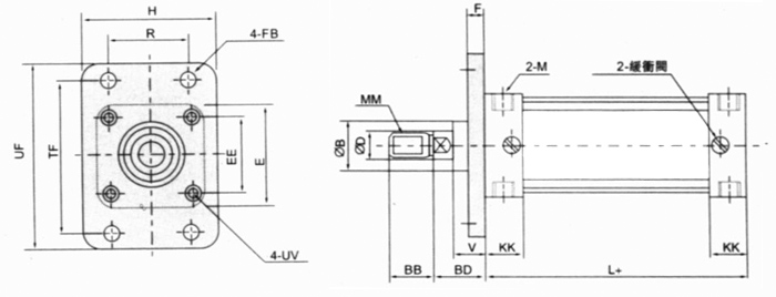 ● FB后法兰式(QGB、QGA气缸)